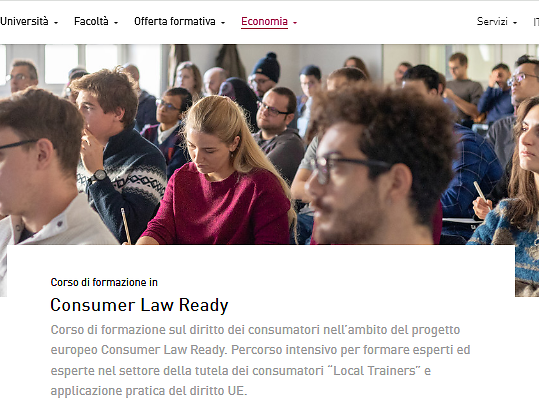 A partire dal 17 aprile fino al 22 maggio per 5 venerdì si terrà alla Libera Università di Bolzano, in collaborazione con la Camera di commercio di Bolzano, il Corso gratuito “Consumer Law Ready” diretto alla formazione di “Trainer” che otterranno una attestazione della qualifica da parte della Commissione UE.