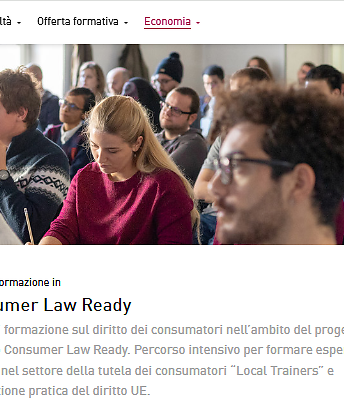A partire dal 17 aprile fino al 22 maggio per 5 venerdì si terrà alla Libera Università di Bolzano, in collaborazione con la Camera di commercio di Bolzano, il Corso “Consumer Law Ready” diretto alla formazione di “Trainer” che otterranno una attestazione della qualifica da parte della Commissione UE.